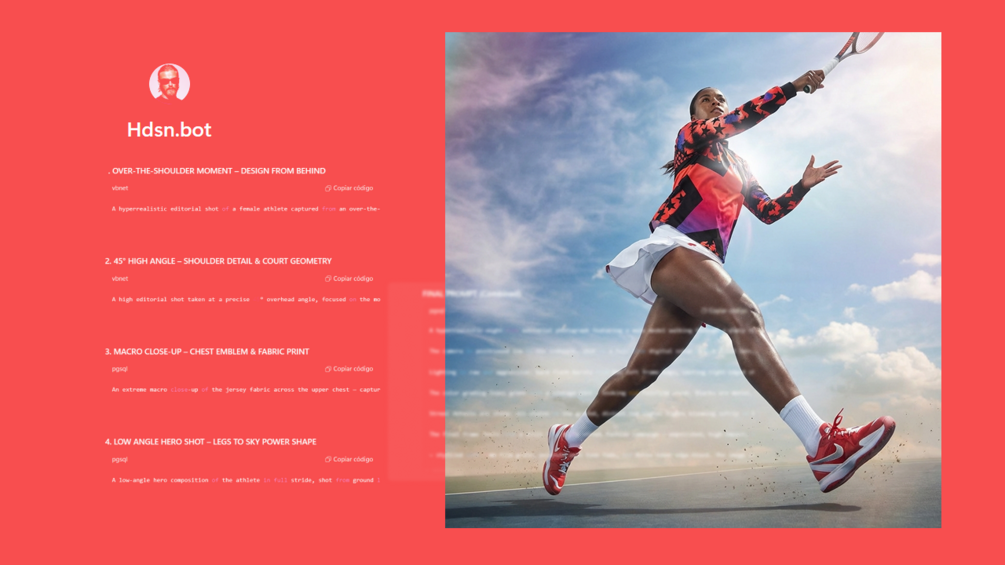 A complete editorial prompt framework combined with a custom AI bot built to generate consistent, high-end visuals and videos for fashion, sports, products, and brand campaigns.